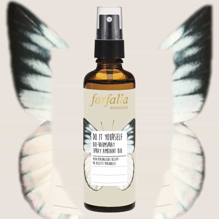 As with a perfume, the composition of head (e.g. citrus fragrances, herbs), heart (flowers) and base notes (wood and needle fragrances) must be as balanced as possible. Add around 20-40 drops of selected essential oils to the do-it-yourself organic room spray and spray it into the room air
