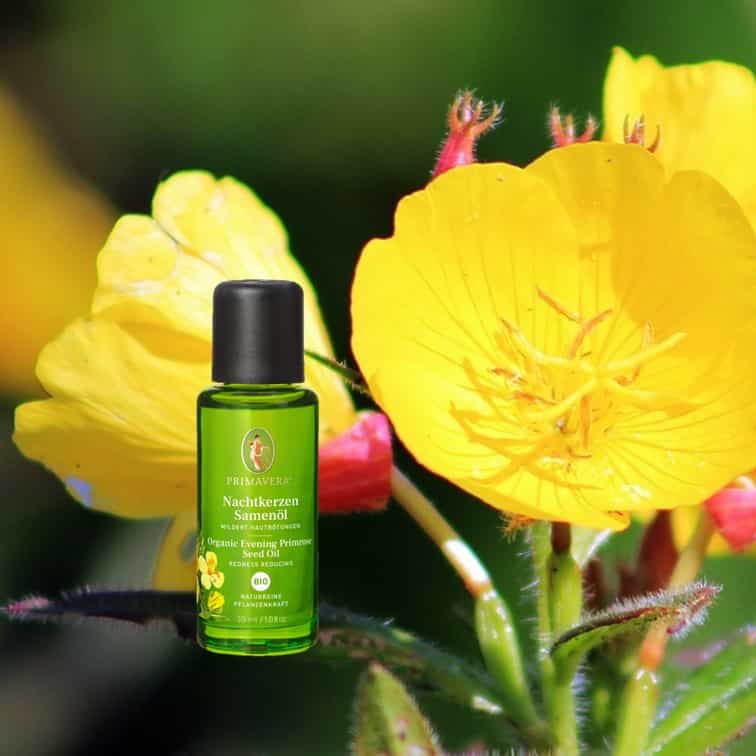Die „gemeine Nachtkerze“ ist eine zweijährige, krautige Pflanze, deren Ursprung in Nord-und Mittelamerika liegt. Sie wird bis zu zwei Metern hoch. Die Nachtkerzengewächse (Onagraceae) sind eine Pflanzenfamilie innerhalb der Ordnung der Myrtenartigen (Myrtales). Oenothera-Arten sind wichtige Versuchspflanzen in der Genetik. Eingeführt im 17.Jhd. als Zierblume, gilt Sie heute in Europa als einheimische Pflanze – ist aber jetzt in allen gemäßigten Klimazonen heimisch.Volkstümliche Name in Deutschland: Nachtschlüsselblume, Eierblume, Gelbe Rapunzel, Rapunzelsellerie, Härekraut, Rapontika, Rübenwurzel, Schinkenkraut, Schinkenwurz, Stolzer Heinrich, Weinblume oder Weinkraut und Hustenblume. Das Nachtkerzenöl bio von Primavera kommt aus China.